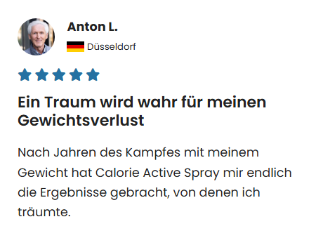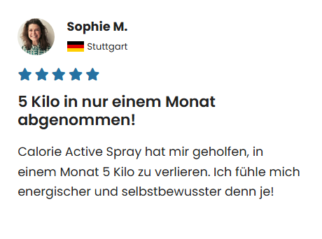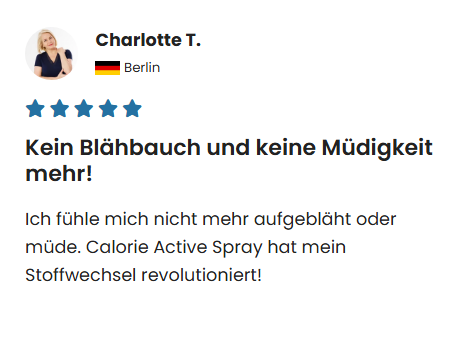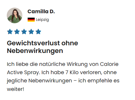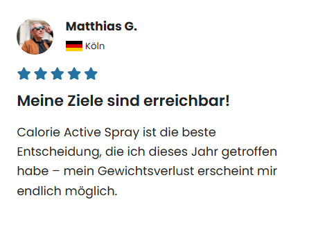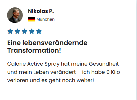 Wie Erfahrungsberichte und Kommentare zeigen, ist Calorie Active Spray seit mehreren Monaten kostenlos erhältlich. Es hat vielen Menschen geholfen, Energielosigkeit und einen verlangsamten Stoffwechsel zu bewältigen – Probleme, die häufig mit den Risiken oder Nebenwirkungen von Medikamenten oder Behandlungen einhergehen. Calorie Active Spray übertrifft die üblichen Versprechen von Nahrungsergänzungsmitteln dank seiner ausgewogenen Formel, die die Körperzusammensetzung, die Beweglichkeit und den Stoffwechsel verbessert und gleichzeitig Energie liefert, die sich leicht in den Alltag integrieren lässt.
